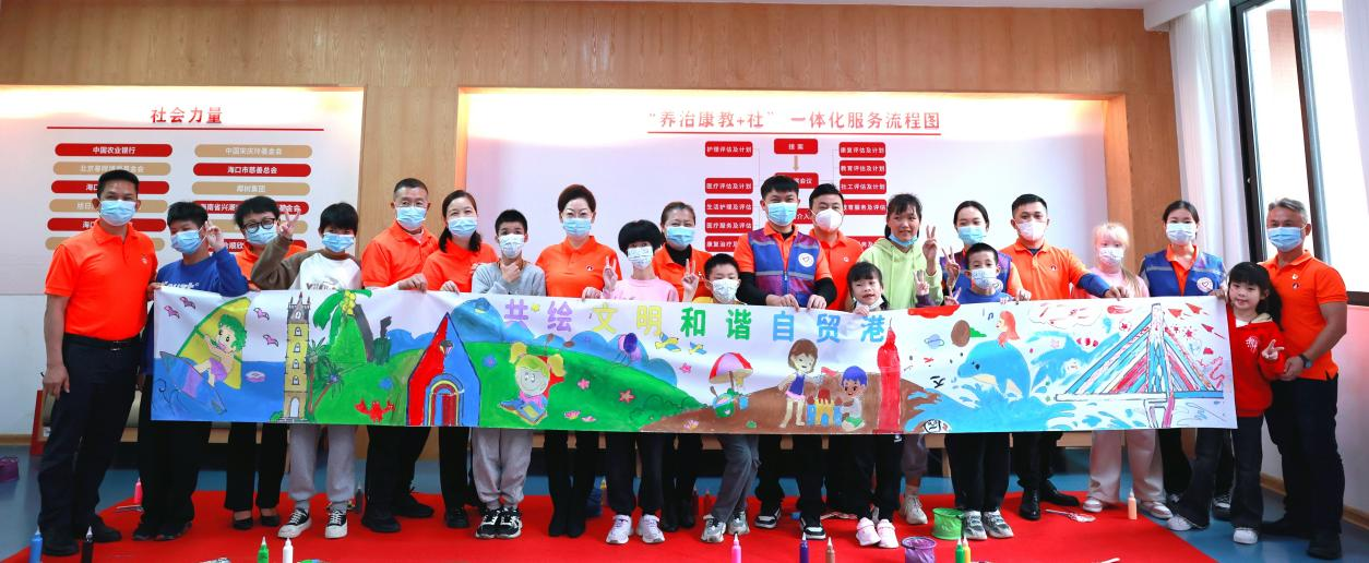 连续9年暖心守护 | 钱柜QG777药业集团志愿者与海口市儿童福利院小朋友共绘自贸港未来